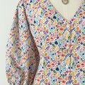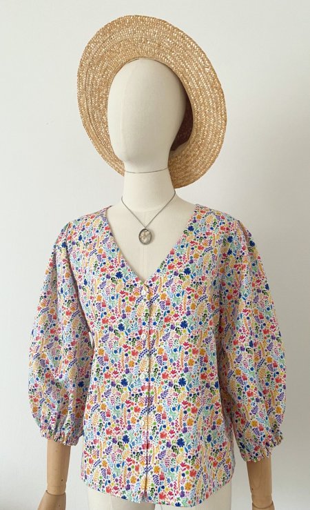 Scollo a V con bottoni nella parte frontale e manica a sbuffo.