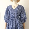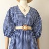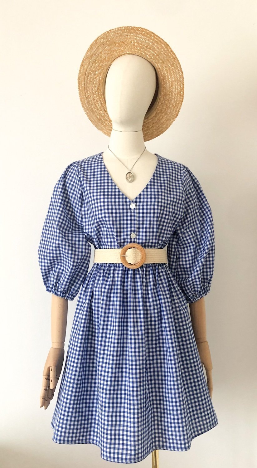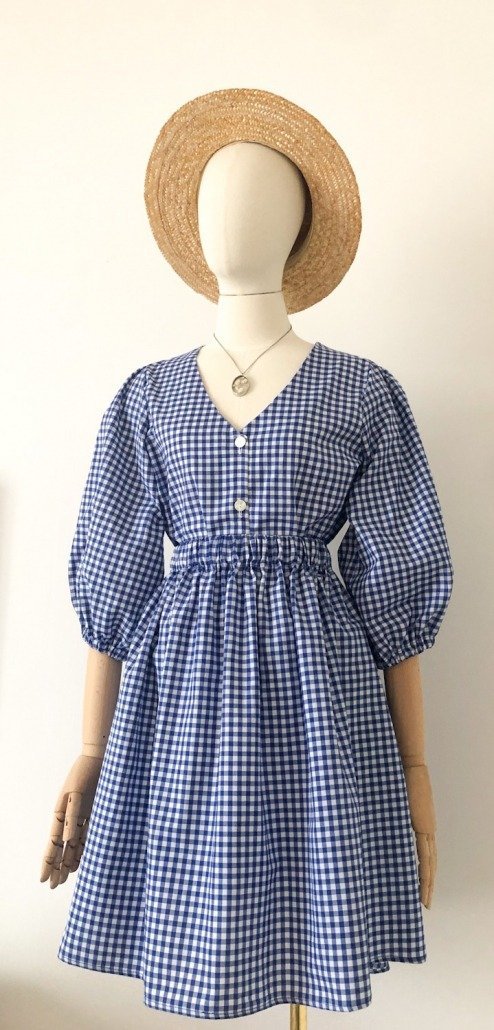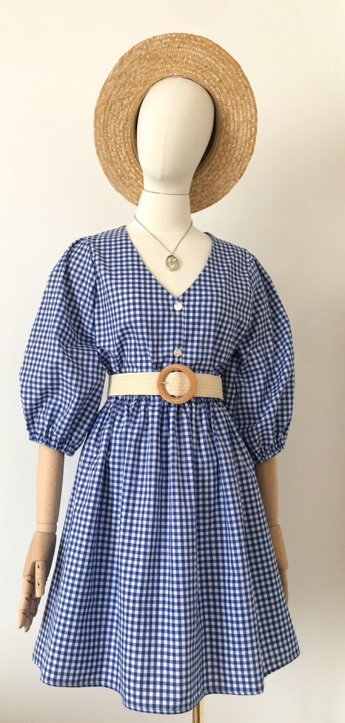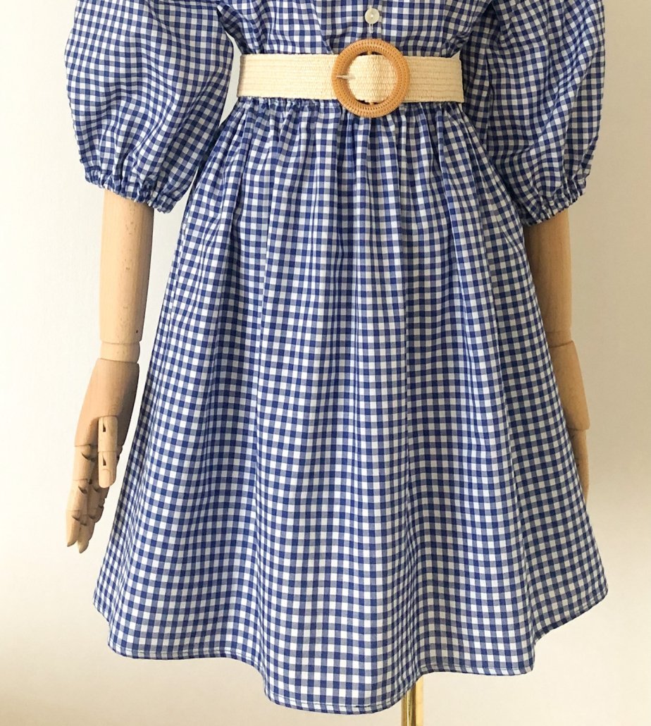 Gonna in cotone con fantasia vichy bianco e blu elettrico.