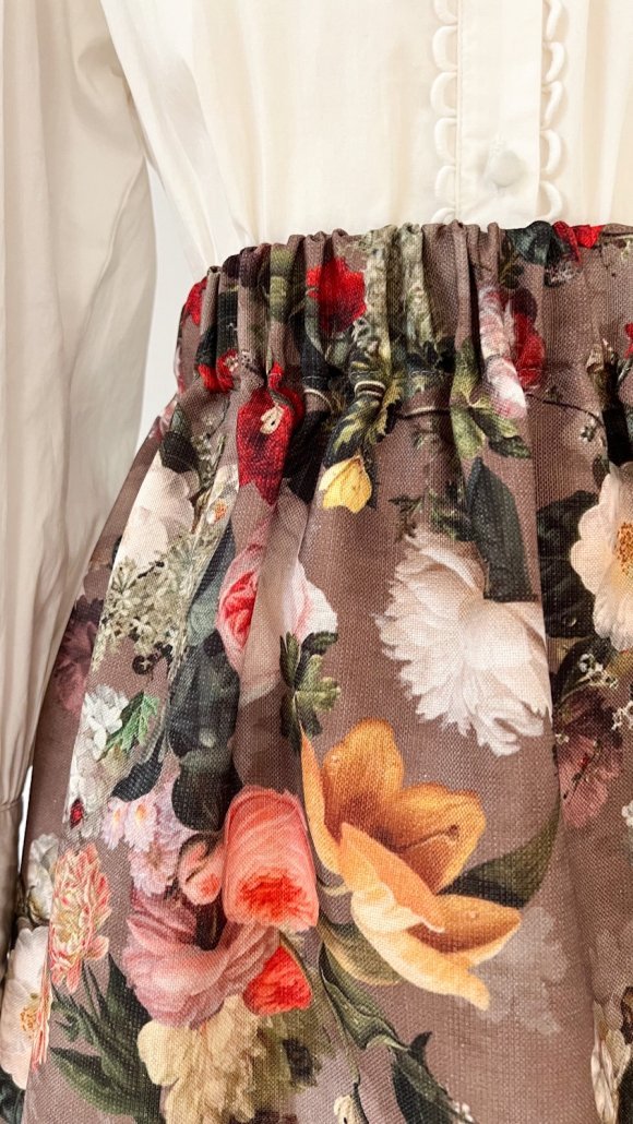 Gonna arricciata in poliestere reciclato in fantasia floreale.