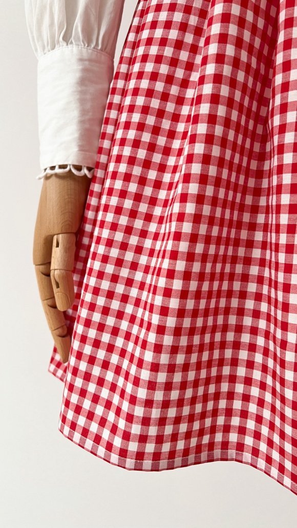 Grembiule con cinturino in vita da allacciare in misto cotone a fantasia vichy bianco e rosso.